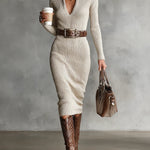 Discover the perfect femininity of our Julieta dress, a knitted midi that delicately shapes your curves and effortlessly turns any day into a special occasion.