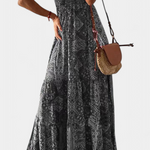 The Saira dress combines romantic charm and a streamlined silhouette in a piece that flows elegantly. Its V-neckline enhances the neck, while the high waist visually elongates the figure. The thin straps add a feminine and playful touch, perfect for sunny days or special nights.