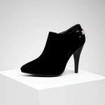 Crafted from soft velvet with a velvety touch and a polished finish, these boots combine our pavé strap with a cushioned orthopaedic insole and a balanced heel that gently supports you. The easy side zip and pointed toe offer a chic and versatile look for denim days and dinner plans.