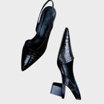 Discover the perfect fusion of sophistication and comfort with the Mirela shoes. With an elegant slingback design, low heel, and patent finish, they are ideal for accompanying your routine in style, from the office to a special dinner. The pointed toe and modern cut add a touch of refinement without compromising on comfort.