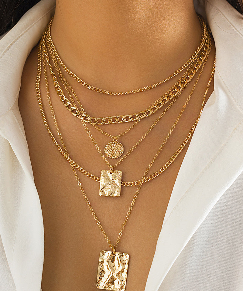 Geometric Metal Chain Pendant Necklace
