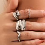 Elegant and versatile, this 4-piece metal ring set offers effortless style with a modern twist. Each ring features a distinct design, allowing you to mix, match, or stack them according to your mood and outfit.