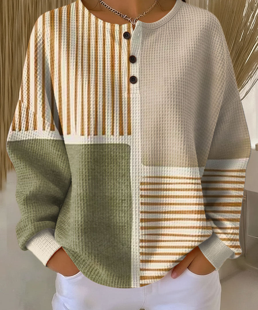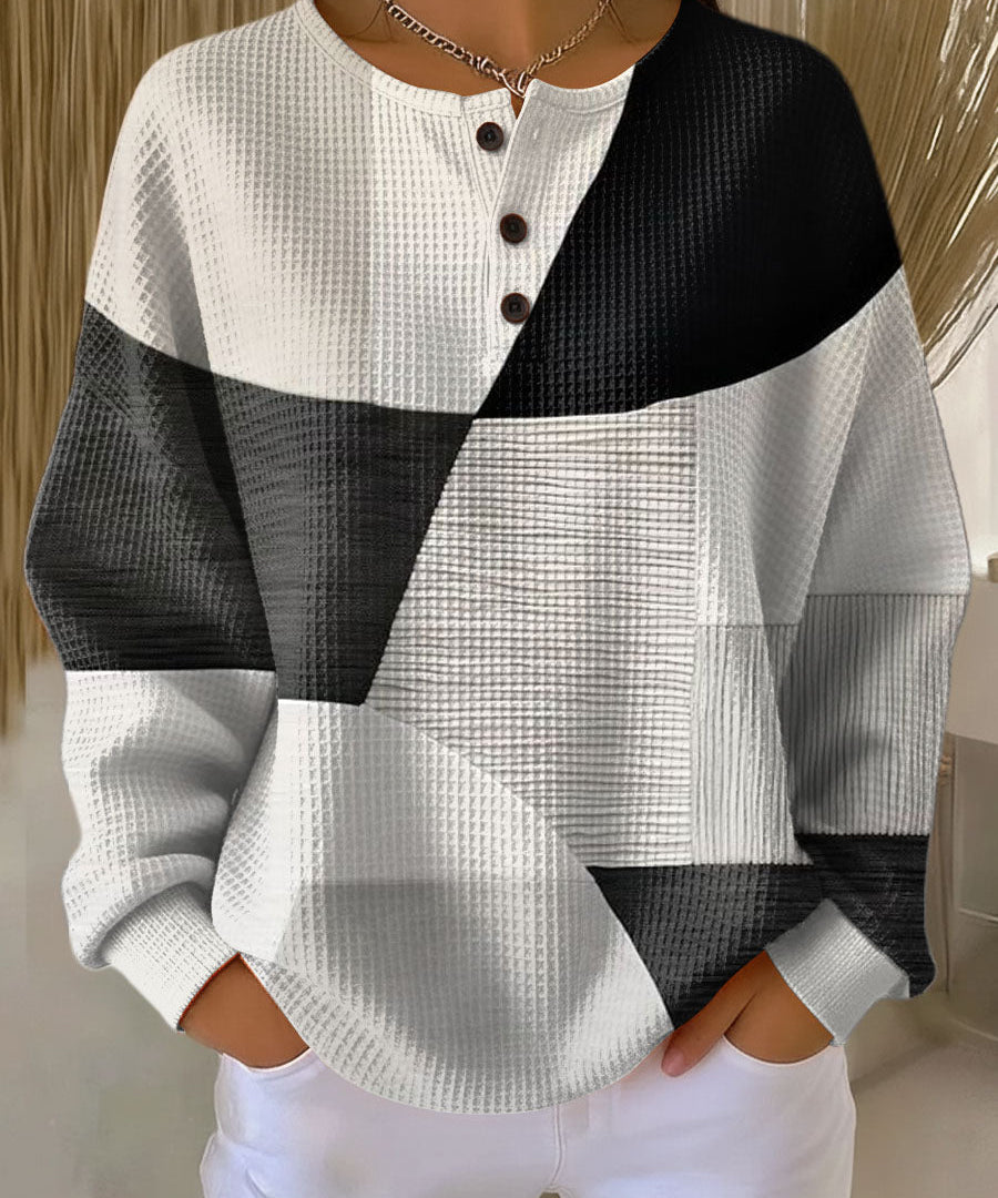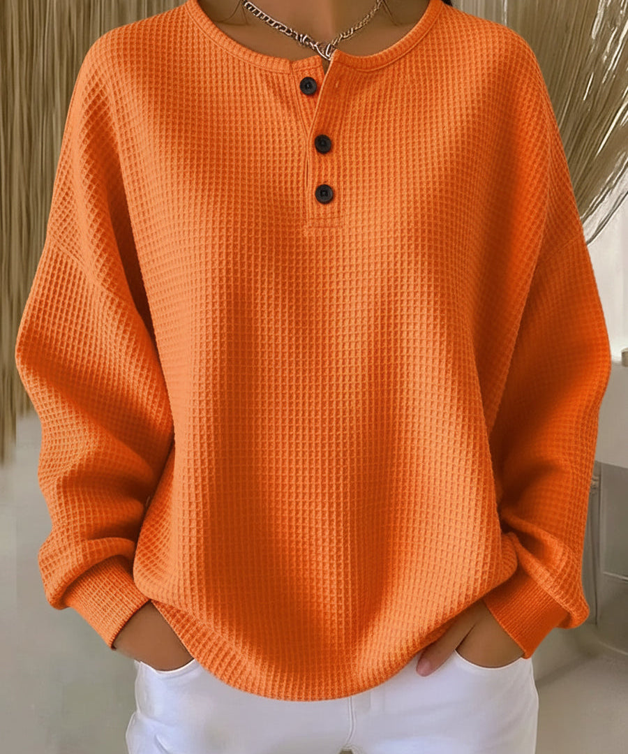 aria-label="Nuria | Cosy Waffle Knit Henley Sweater"