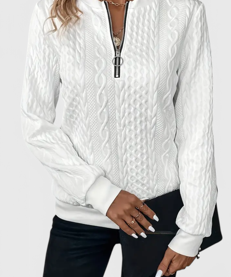 aria-label="Helene V-Neck Jumper with Zip and Long Sleeves"
