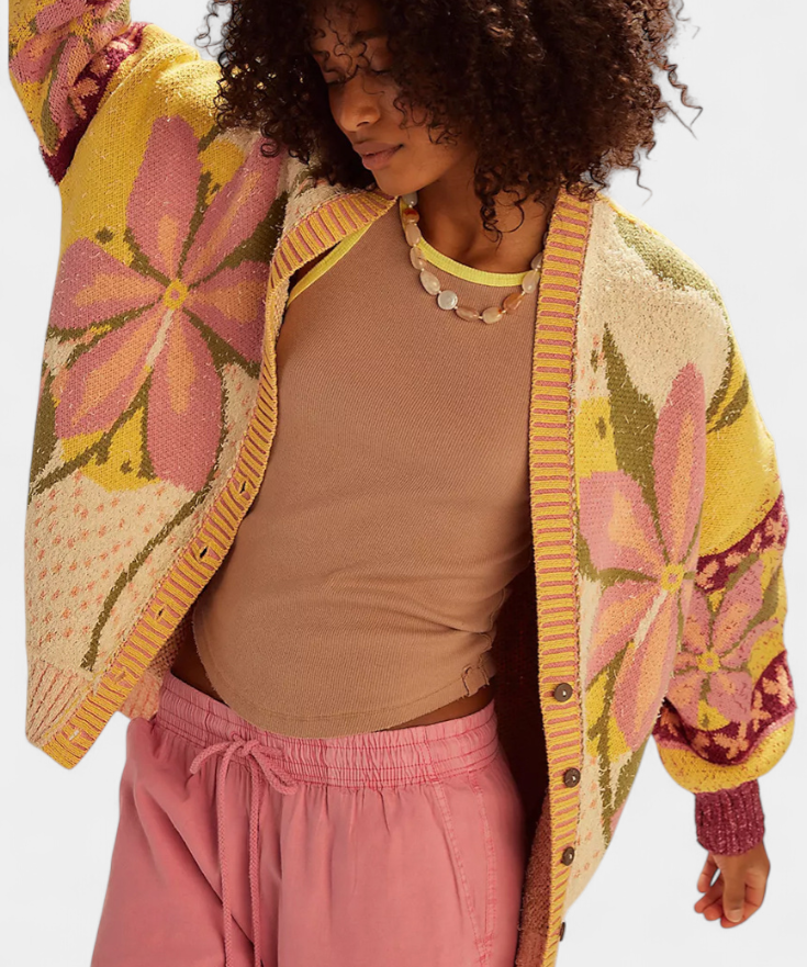aria-label="Casey Floral Pattern Knit Cardigan with Loose Fit"