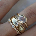 Charming and radiant, this vintage-inspired ring set combines warm gold tones with the brilliant clarity of zirconia stones. Whether worn stacked or individually, the design evokes timeless elegance, perfect for adding a refined finish to any occasion.