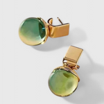 Charming and timeless, these vintage-inspired earrings feature faceted green crystals set in a warm gold frame. Their rich hue and classic silhouette evoke effortless elegance, making them the perfect finishing touch for both day and night looks.