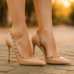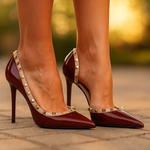 Crafted from premium vegan patent leather with our signature studded trim, these Vivienne Cairo Heels offer a designer look with a cushioned orthopaedic insole that alleviates pressure under the ball of the foot. The pointed toe and balanced heel create a sleek silhouette that adapts versatilely, from formal dresses to tailored trousers, with a bold touch in every colour.